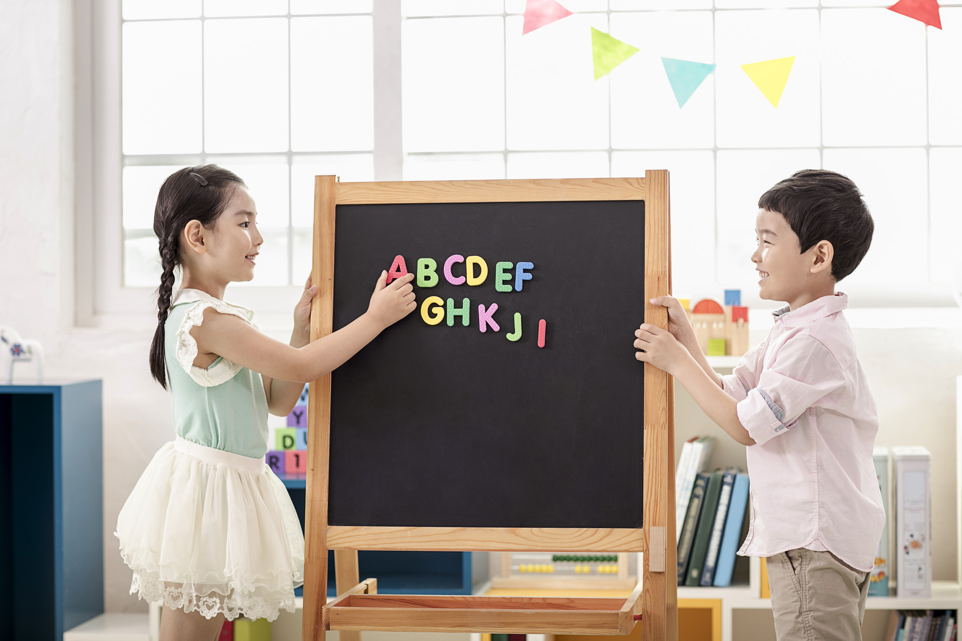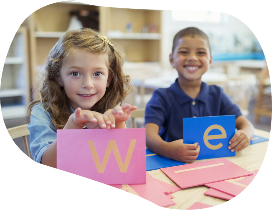 어린이의 이중 언어발달은 영유아기에 스폰지가 물을 흡수하듯이 자연스럽게 이루어져야 한다는 철학으로 놀이중심, 몬테소리 교구로